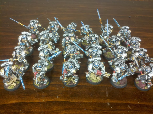 As for the offense (or offensive) part I've started an angry marines army with the random space marine parts that I had sitting around. These guys should be a fun time.